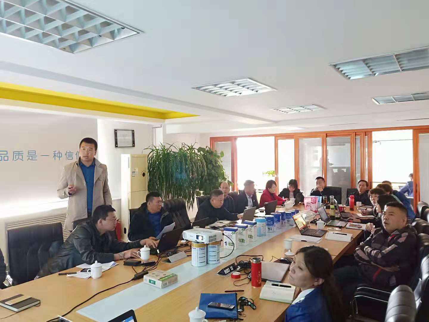 為更好對2018三季度經(jīng)營運行分析,制定下一階段經(jīng)營措施,確保年度目標任務的全面完成。10月15日,集團公司在奶粉工廠會議室召開2018年三季度經(jīng)營分析會。集團會議由常務副總經(jīng)理唐勇主持,董事長鄭俊懷、集團副總經(jīng)理尤爾根、集團財務副總監(jiān)財音吉雅、奶粉事業(yè)部總經(jīng)理鄭強、液態(tài)奶銷售事業(yè)部總經(jīng)理趙元亮、牧業(yè)事業(yè)部總經(jīng)理李文博及集團各部門負責人等參加會議。